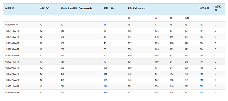 容量范围:21W~510W/cell(25°C)